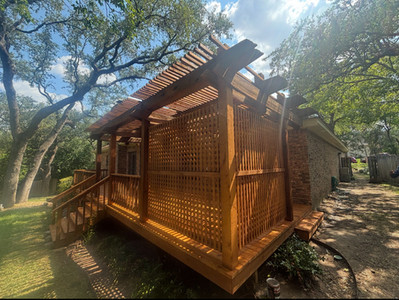 Cedar Deck with Cedar Shade Arbor and Privacy Screen. Pecan Stain completed after remodel work.